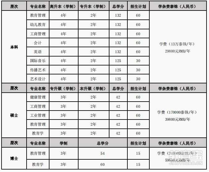 中英泰三语教学,无需语言预科,学习时间短,轻松毕业。